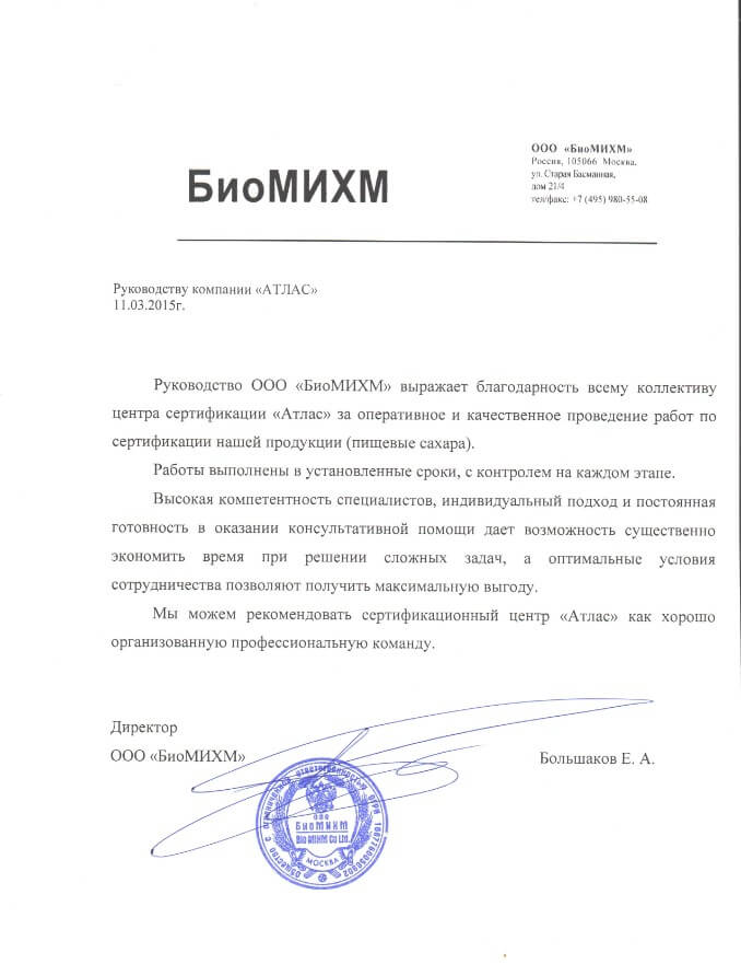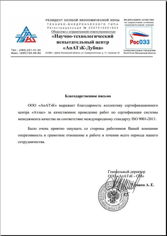 ОТ АККРЕДИТОВАННОГО ОРГАНА